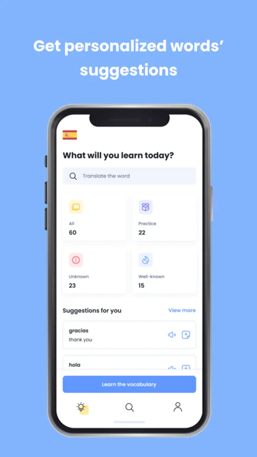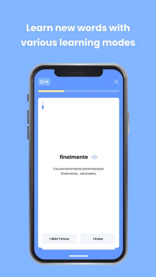 • You can choose from a system of intelligent repetitions or folders to organize the level of knowledge of your words