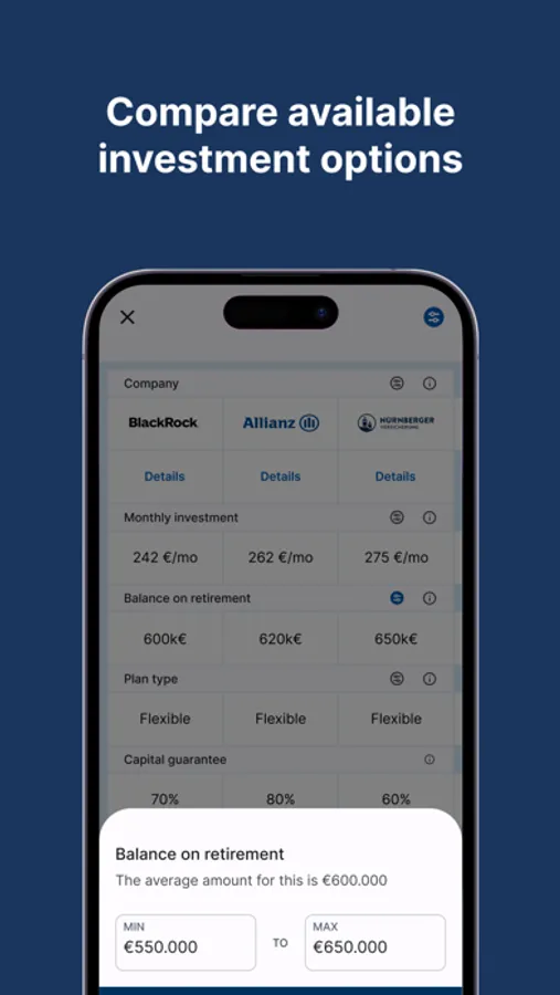 Our app allows you to easily compare various financial investments. This means that: