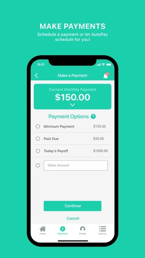 • Set AutoPay: Schedule recurring payments for ease of mind knowing you will not have to worry about making payments on time.