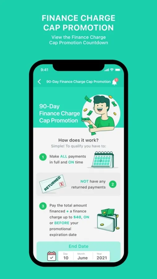 • Finance Charge Cap Promotion Countdown: Track the terms of your 90-Finance Charge Cap Promotion.