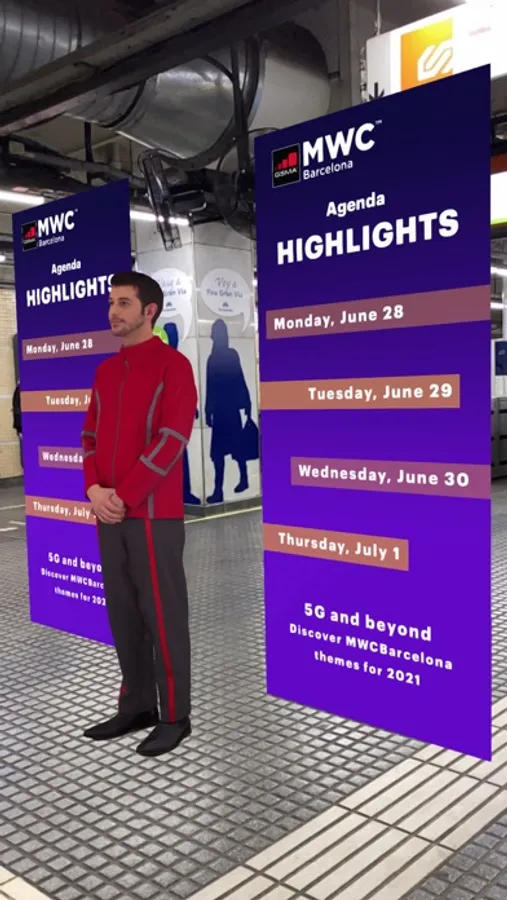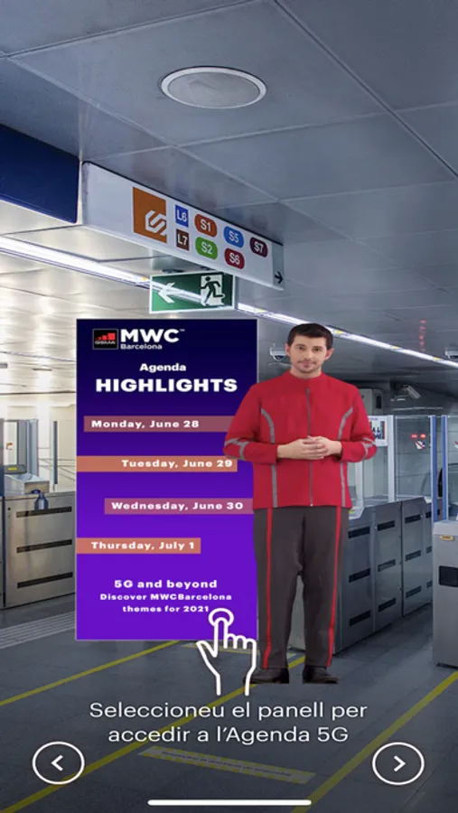 During the journey to Fira Barcelona Gran Via, in the stations of Plaça Espanya, Magòria-La Campana, Ildefons Cerdà and Europa-Fira, the volumetric assistants of the 5G Railway Lab will give you all the details about the MWC22 5G main events.