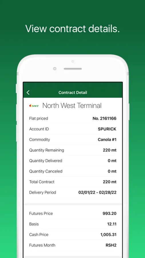 With a robust toolset that's constantly evolving to meet the demands of the modern grower, your North West Terminal app is built with powerful features to help you save time and maximize profits, including: