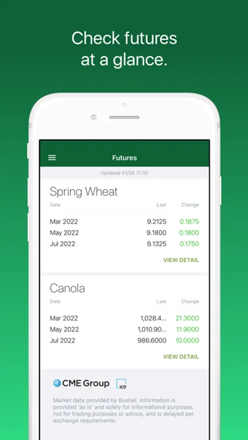 Futures: See Grains, Feed, Livestock, and Ethanol futures listed in order of your preference