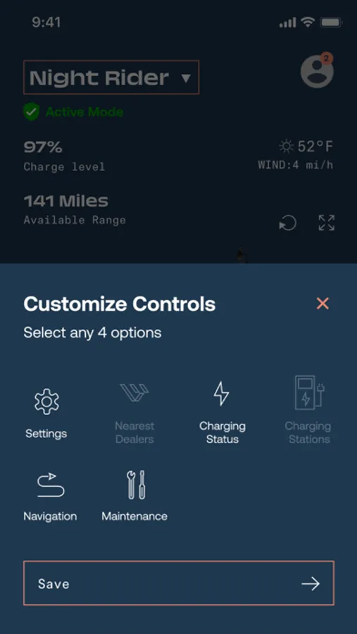 Enjoy more riding with integrated LiveWire compatible charge station locator.