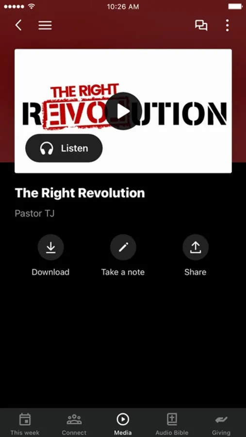 This app will help you stay connected with the day-to-day life of our church. With this app you can: watch or listen to past messages; stay up to date with push notifications; share your favorite messages via Twitter, Facebook, or email; and download messages for offline listening.