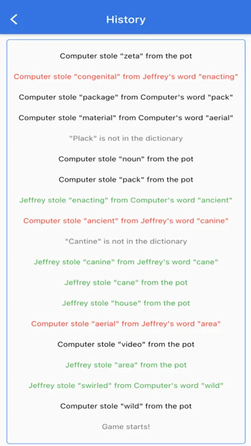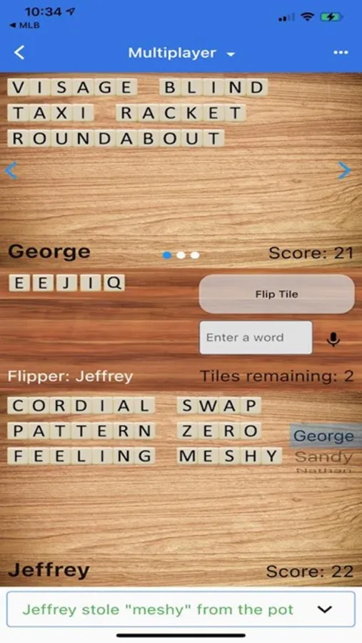 Play carefully! If you do not see an available word, the computer may take it once you flip the next tile! In multiplayer mode, a player may take a word at any time!