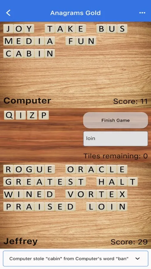 Sharpen your vocabulary and enjoy a fast-paced, stimulating Anagrams game!