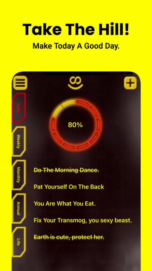 Good Day(s) is an irreverent self-improvement application. Use it to track what you want to achieve, and have fun doing it. IE, this ain't yo' daddy's to-do list.