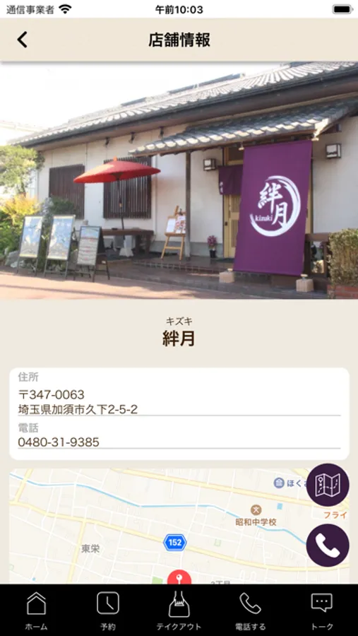 店舗のマップが表示され、地図アプリとも連携しているので、初めてのご来店の時も簡単に見つけることができます。