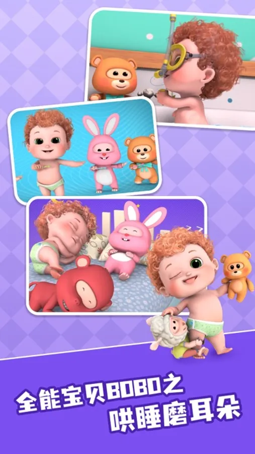 《全能宝贝BOBO之哄睡磨耳朵》为宝宝精选世界级英文哄睡儿歌,帮助宝爸宝妈唱摇篮曲,用纯正英文发音为宝宝睡前磨耳朵,为宝宝带来一晚精致睡眠,柔美的画面让宝宝舒缓一天的疲惫,BOBO其实也是个调皮的宝宝,那么BOBO的妈妈有什么方法能让这个小捣蛋鬼安心入睡的呢?摇篮曲与睡前小游戏是必备项目,那还有哪些创新的办法呢?快一起来看看吧。
