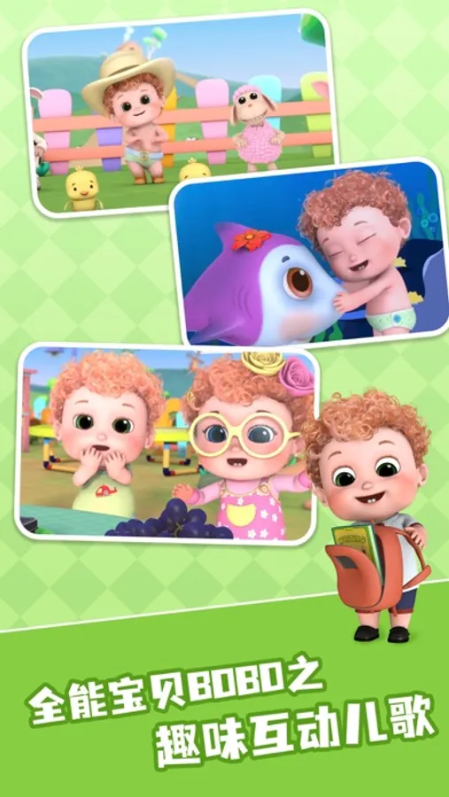 《全能宝贝BOBO》是为适合0-3岁幼儿开发的全新英语启蒙系列儿歌内容,可爱的BOBO带领他的宠物小天团们为宝宝带来最有趣的英文启蒙儿歌,包括了小汽车、小动物以及美食等等有趣的主题,为0-3岁宝宝带来具有趣味性的儿歌。帮助宝宝学习英文的同时提升认知能力,寓教于乐的同时,家长也能参与其中,达到亲子互动。