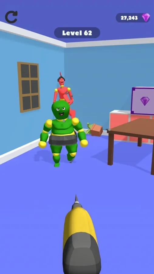 Use a nail gun to shoot nails to pin enemies to the wall. The goal is simple, kill everyone. Click on the screen to launch, hit wherever you want.