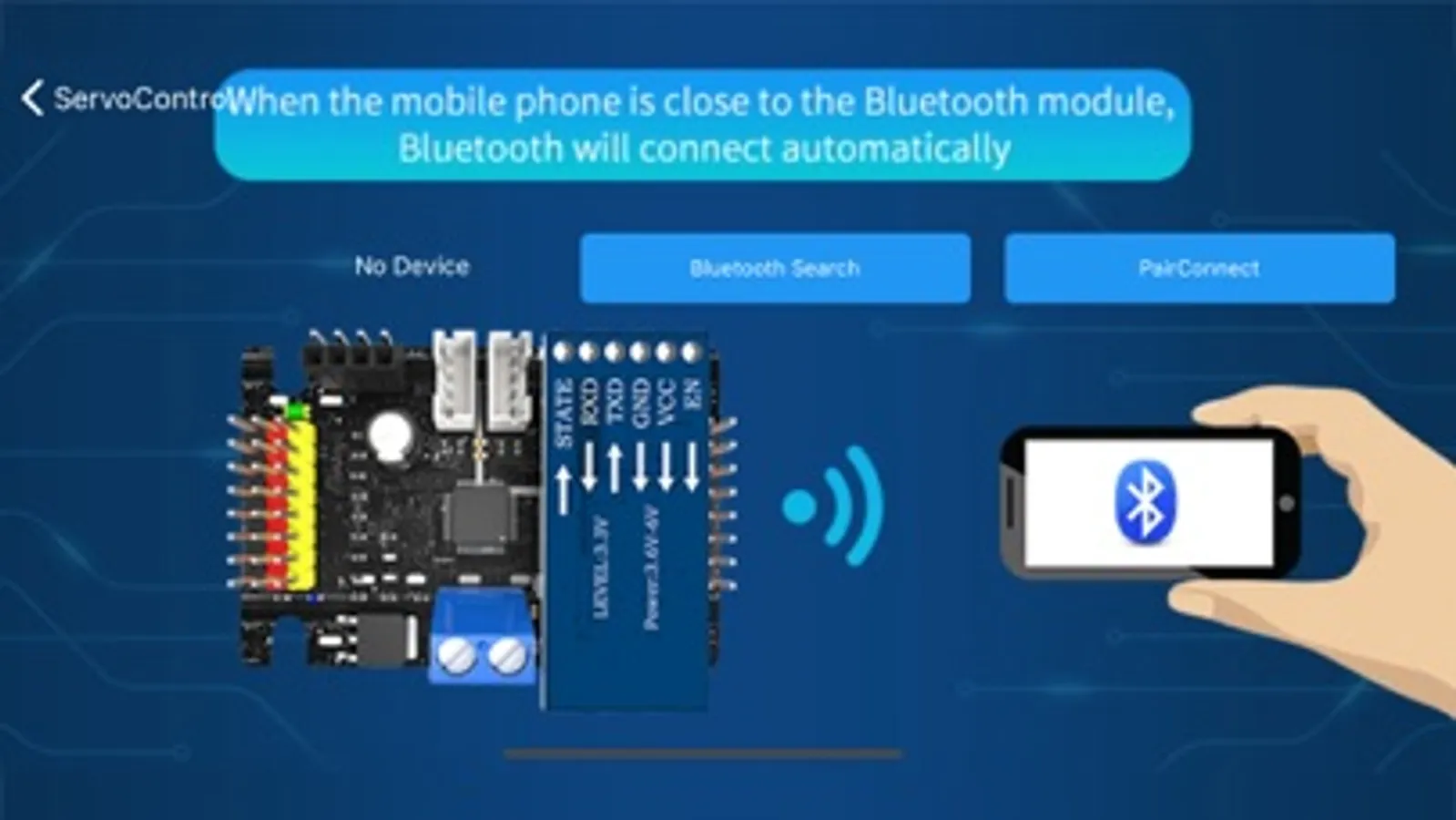 主要功能:使用蓝牙连接16路舵机产品,实时控制舵机角度,蓝牙遥控小车,FPV遥控等