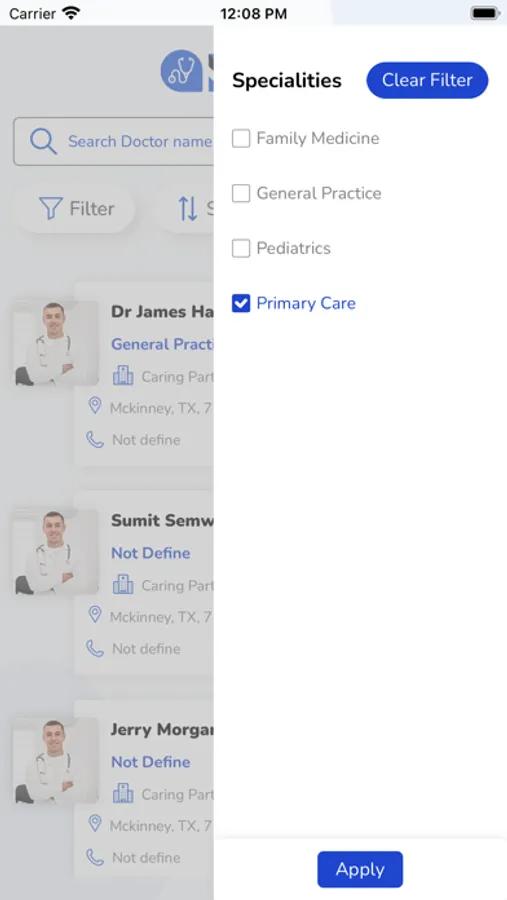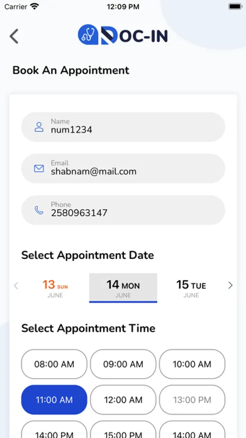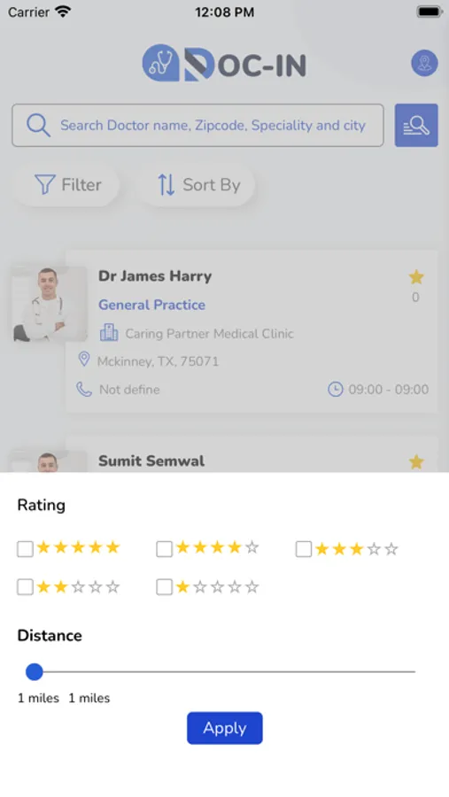 Doc-In pulls all the list of medical professionals in your area and this allows you select the desired Doctor to book an appointment