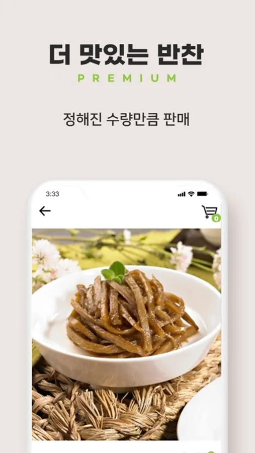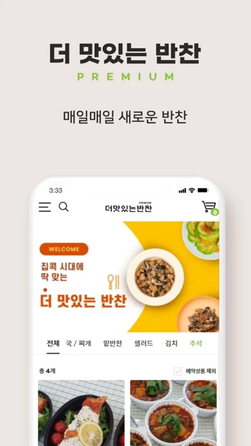 한층 업그레이드된 "프리미엄" 반찬 매일매일 새로운 반찬 이제 백화점에서도 간편하게 주문 정해진 수량 만큼 판매 반찬 만들기엔 내 시간이 아까우니까!