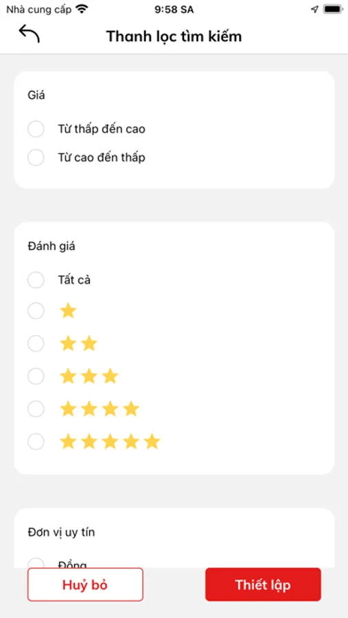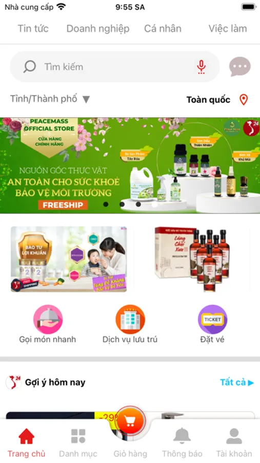 + Cung: Hiển thị danh sách dịch vụ, sản phẩm mà doanh nghiệp tại địa phương đang cung cấp và mở bản.