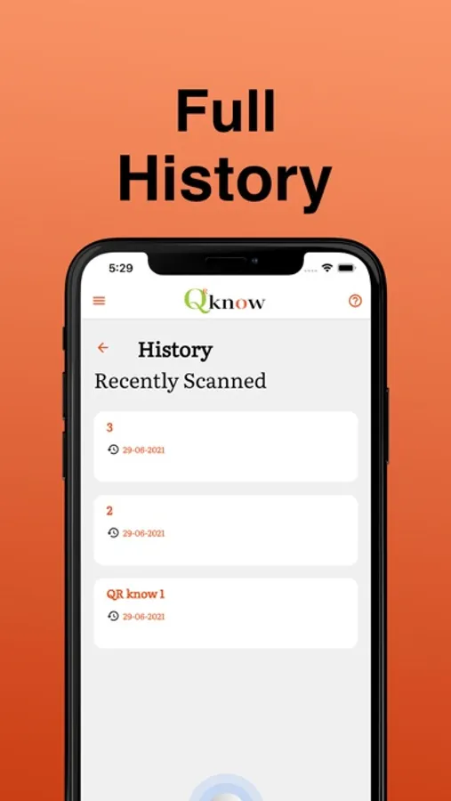 History: Which display all the previously scanned QR code's text data