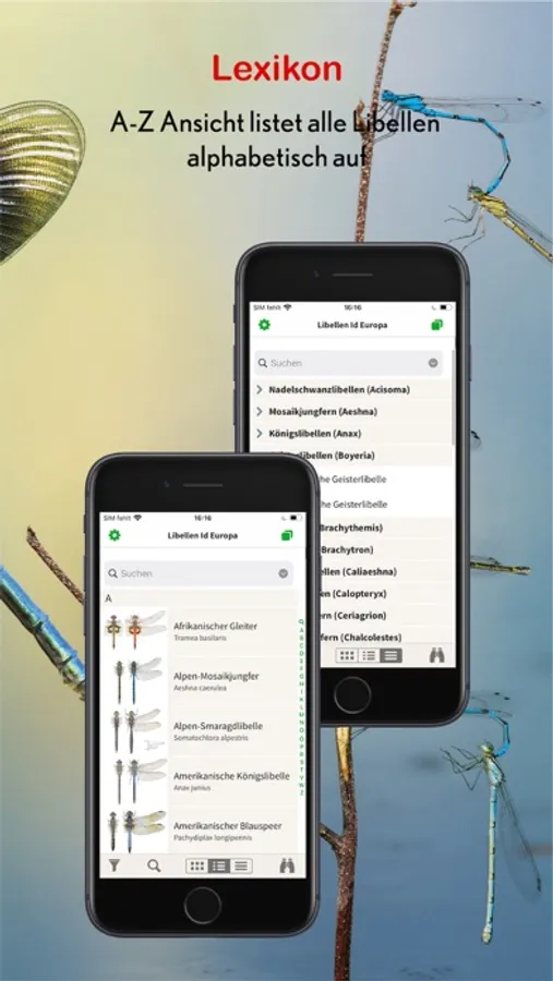 Das macht diese App zur einzigen und besten App im deutschsprachigen Raum um zuverlässig Libellen zu bestimmen. Für Laien, Naturbegeisterte und Wissenschaftler gleichermaßen geeignet.