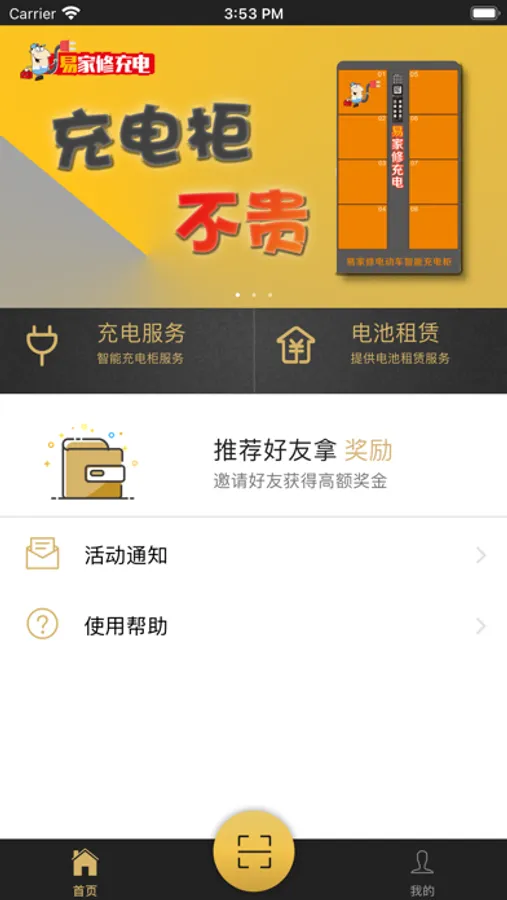 利用易家修充电柜APP可查找附近的智能充电柜,通过扫码下单充电、实时查看充电进度、充满取出电池等操作,实现电动车的方便、快捷充电服务。