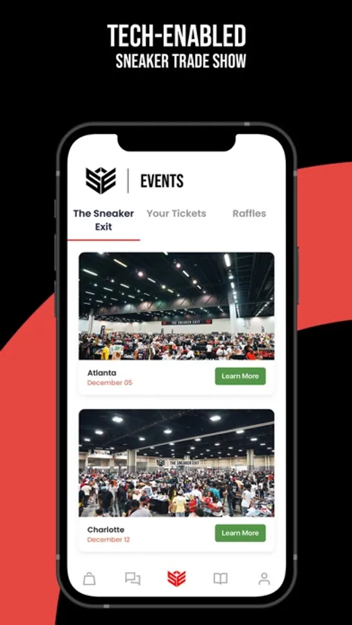 The Sneaker Exit is the ultimate sneaker app for sneaker enthusiasts worldwide! Our all-in-one app is the solution to your sneaker needs. You can start by attending The Sneaker Exit, the only tech-enabled sneaker show in the world. The fun doesn’t stop there check out the game changing features of our app!