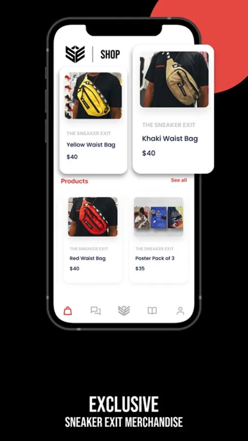 The exclusive bags and posters you can only find at our trade shows? They are now available on our app with more amazing merch you can shop from. Be on the lookout for Sneaker Exit kick drops for our premium subscribers.