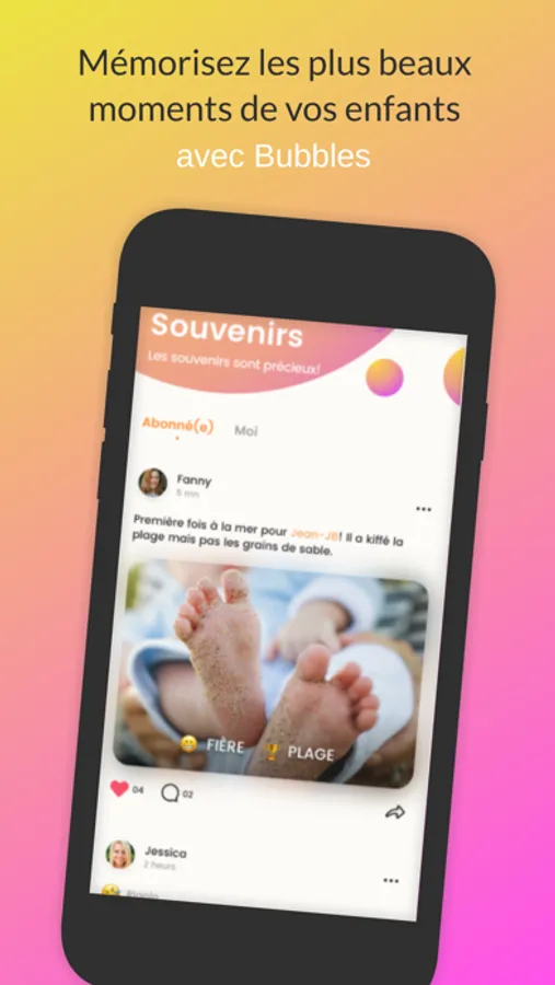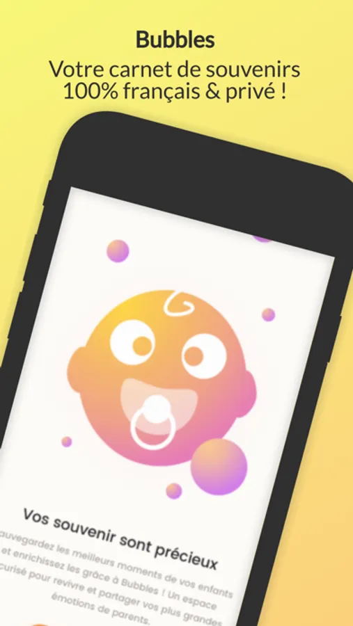 Bubbles vous permet de créer de jolies bulles de souvenirs pour partager et vous remémorer toute l’émotion des petits et grands moments de vie de vos enfants !