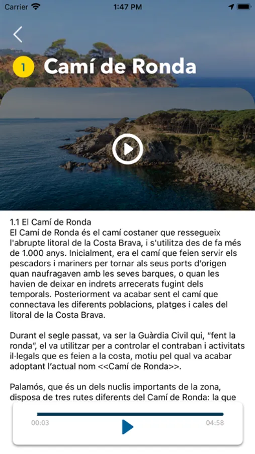 La APP inclou també un punt introductori al camí de ronda, amb un vídeo de presentació, que s’obre també de manera automàtica quan l’usuari accedeix per primer cop a la APP per una de les 7 portes d’entrada al camí de ronda.