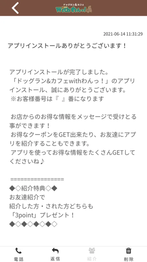 withわんっ!のアプリをSNSを通じてお友達に紹介する事ができます。