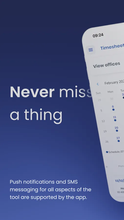 Push notifications and SMS messaging for all aspects of the tool are supported by the app.