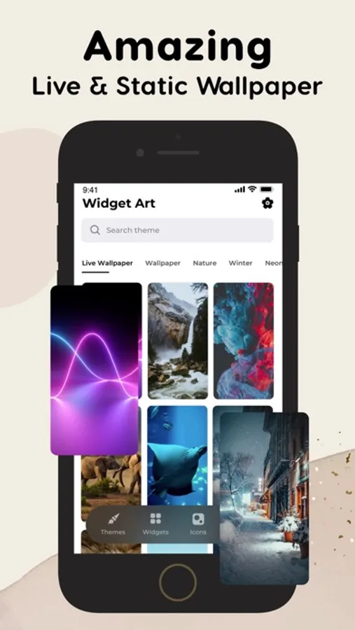 Theme packs are included in the app which takes place to change the full view of home screen with wonderful combinations of icons and widgets, there is library of themes to choose from.