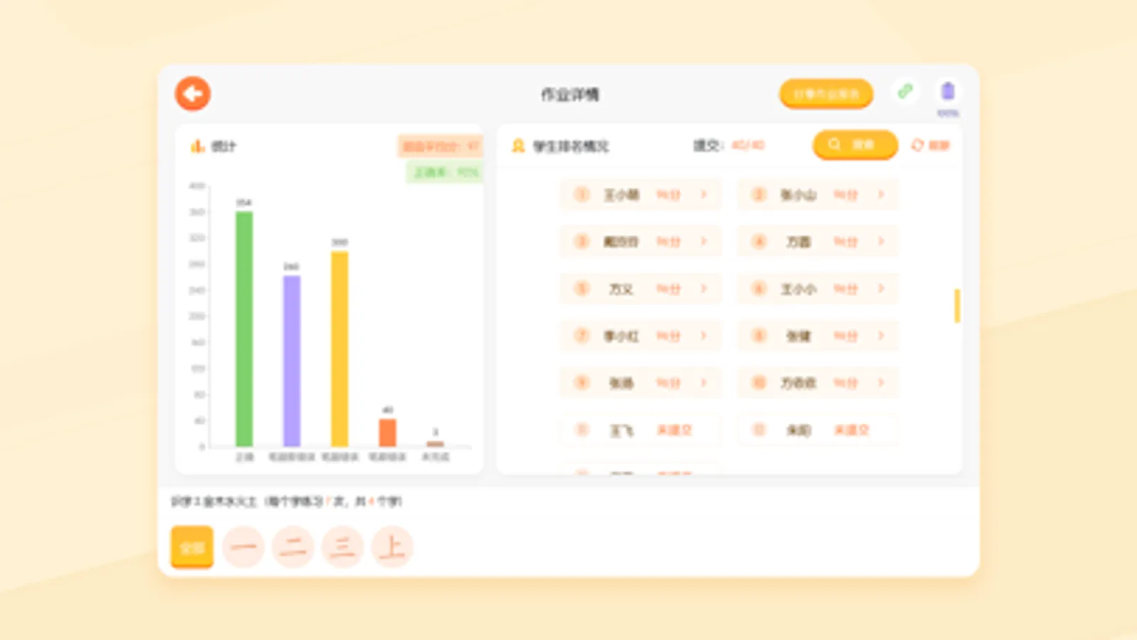 2. 作业管理:教师可以通过教师账号给对应班级布置习字作业;学生完成作业后系统自动化评分统计和回收提交。操作便捷,减轻老师繁琐工作。