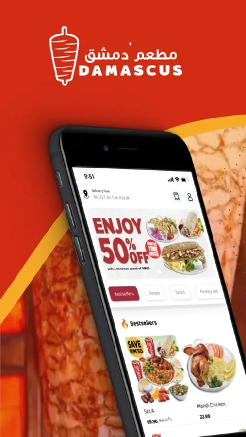 Looking for the quickest food delivery? That’s easy with our new Damascus Food delivery app. We’ve got it all – fast delivery, unlimited options, easy online payment and vouchers all at your fingertips. Ordering is possible within Kuala Lumpur (Malaysia) and surrounding areas.