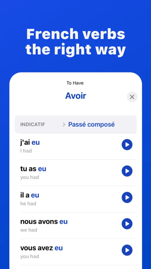 You can also use this app with most language learning apps to speed up your french learning; the more verbs you know, the easy the french learning.