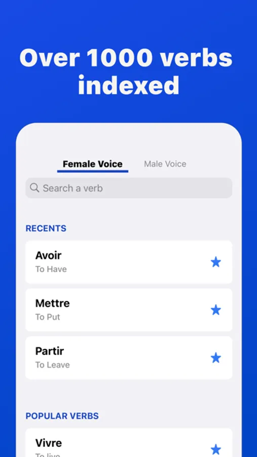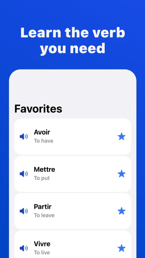 - Access offline audio for favorite verbs