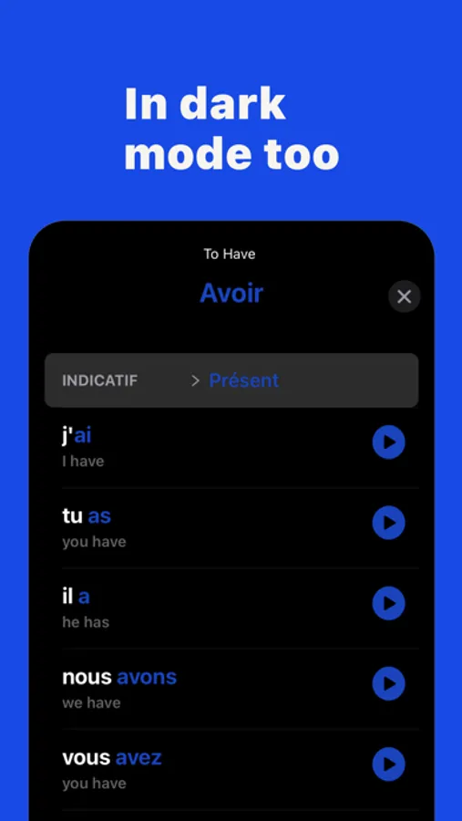 - Access all verbs and conjugation tables offline