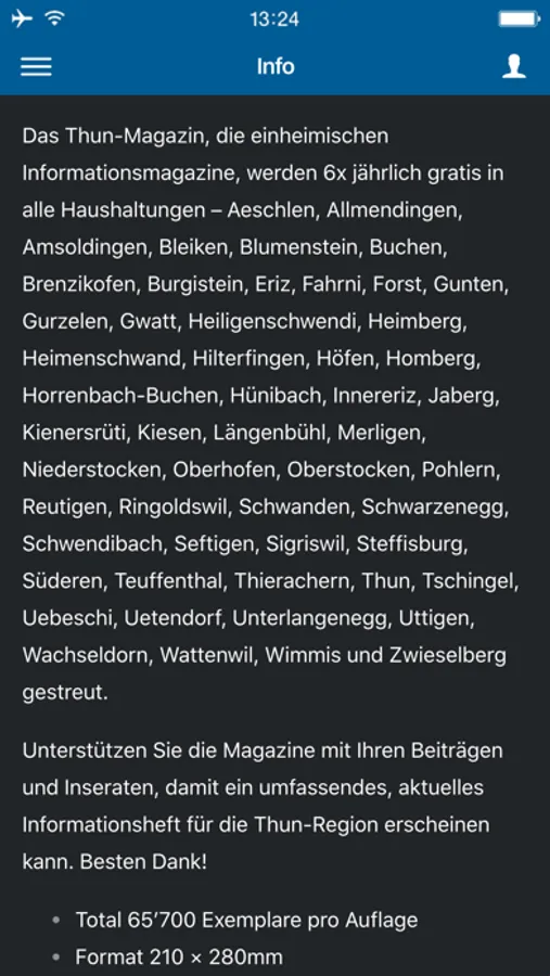 Thun-Magazin ist das bekannte und informative Stadtmagazin, das 6x jährlich in alle Haushaltungen der Stadt Thun und den angrenzenden Gemeinden gestreut wird. Herausgeberin ist die Stadt Thun in Zusammenarbeit mit der Innenstadt-Genossenschaft Thun IGT.