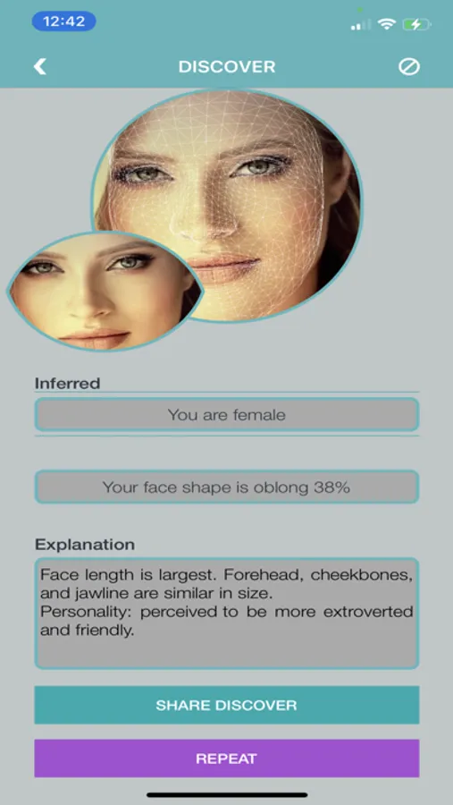 This app is for entertainment purposes. Have you ever asked yourself, what could be known from your face? This app uses thousands of pictures to get that information.