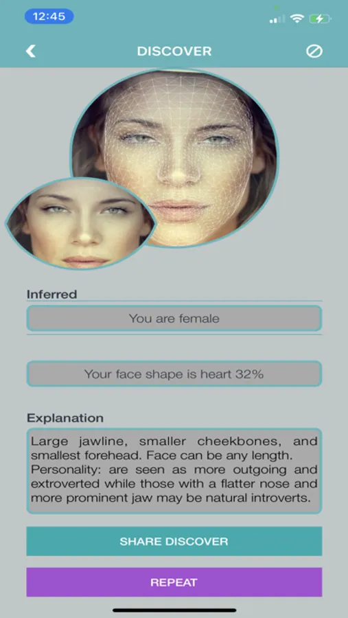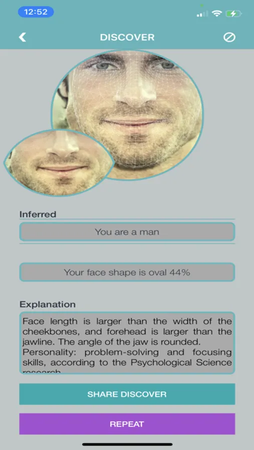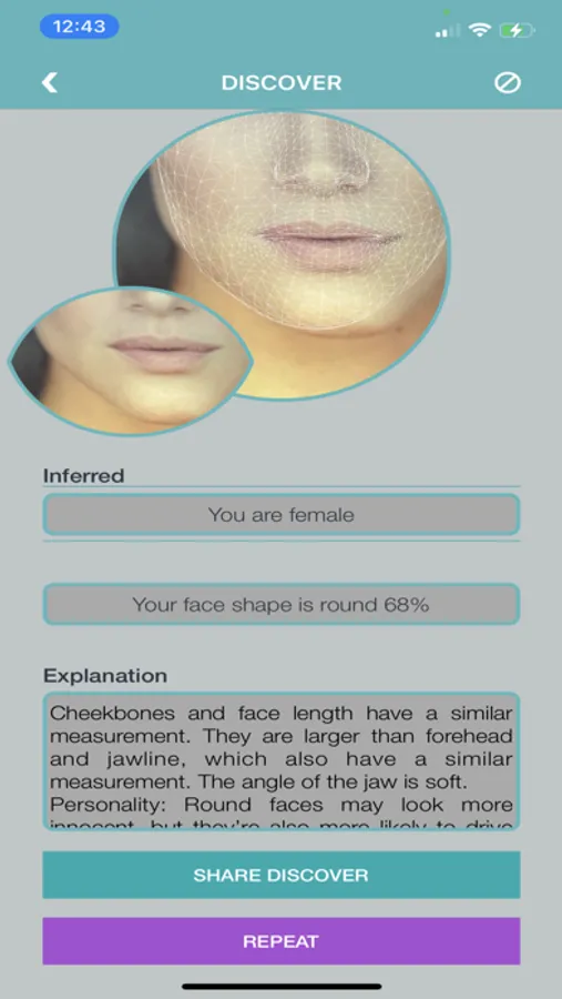 You will get some guess like if you are a man, a woman, your face shape and the personality that could be perceived from your face shape.