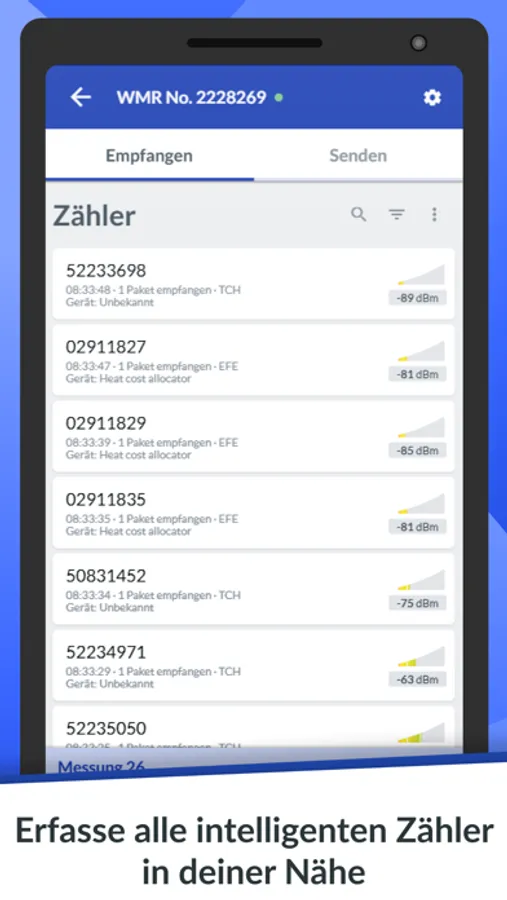 Unser Netztester WMR ist ein kompaktes, einfach zu bedienendes Handgerät für die Messung von Wireless MBus Signalen an. Neben Parametern wie der Signalstärke, werden auch komplette Wireless M-Bus Nachrichten empfangen und bei Bedarf angezeigt. Über den Antennenanschluss lassen sich externe Antennen problemlos anschließen. Somit wird eine ganzheitliche Bewertung und valide Einschätzung der Netzqualität gewährleistet und ob eine Wireless M-Bus Anbindung realisiert werden kann. Sie können mit unserem Signaltester teure und aufwändige Installationsabbrüche vermeiden!