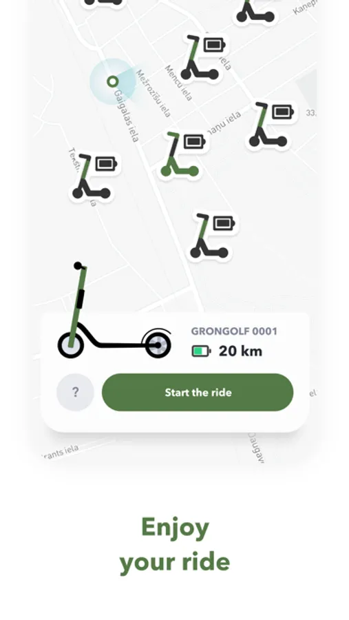 Är en App för att kunna hyra en Grön-golfscooter på golfbanan.