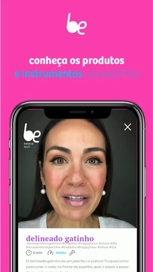 Aqui você aprende o passo a passo de como fazer sua maquiagem favorita (delineado gatinho e colorido, preparação de pele, sobrancelha, contorno, blush...) de forma 100% personalizada para características do seu rosto e direto pelo seu celular!