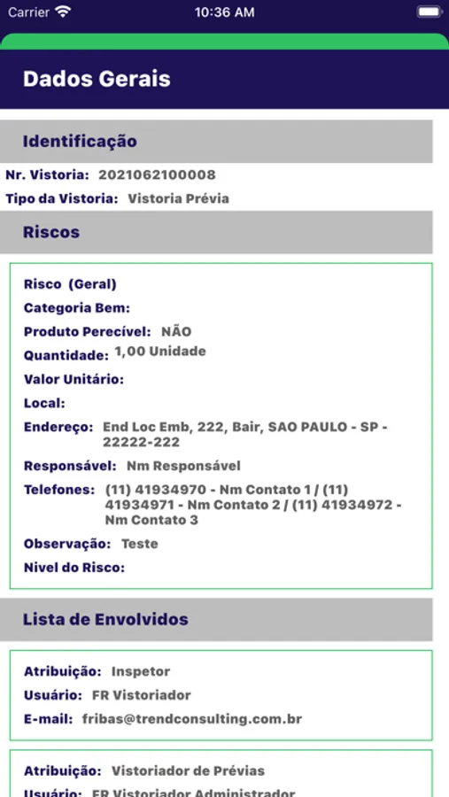 O aplicativo está integrado ao ambiente da seguradora, proporcionando agilidade na análise da vistoria prévia.