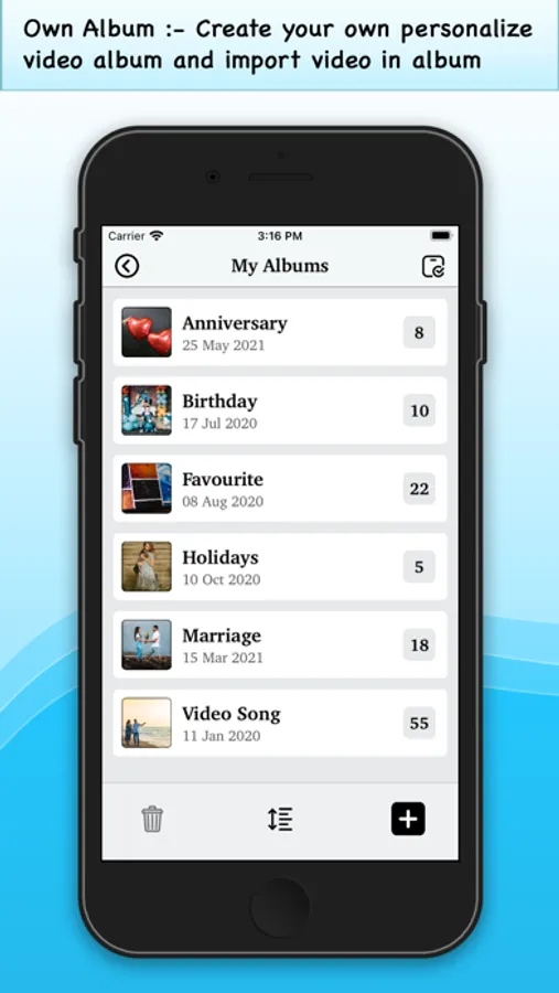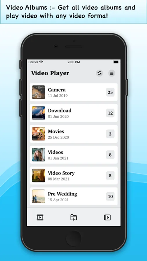 Video Player allows you to create your own video folder and manage videos with own personalize albums.