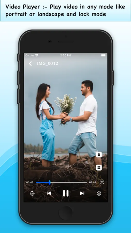 This app also support volume adjustment, brightness adjustment, fast forward and backward and lock mode.