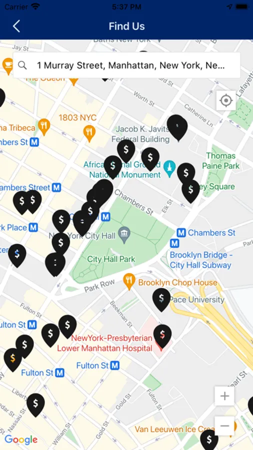 The My Location control can restrict transactions to merchants located within a certain range of your location (using your phone’s GPS); transactions requested outside of the specified range can be declined. The My Region control uses city, state, country or zip code on an expandable interactive map; transactions requested by merchants outside of a specific region can be declined.