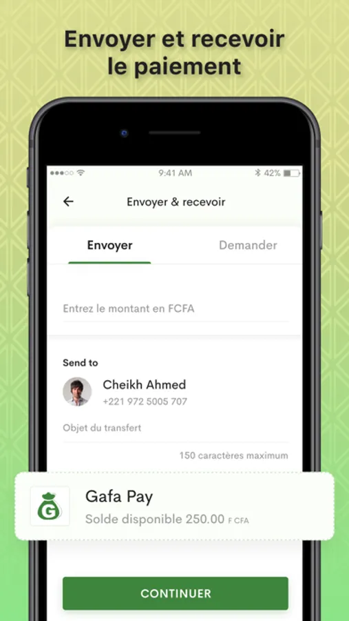 GafaPay is a "mobile money" solution that provides access to a full range of transactional and financial services without having a bank account. GafaPay is accessible via an extensive network of distributors equipped with suitable devices and via the mobile banking application of the various GafaPay branches in Africa and beyond. GafaPay customers can make deposits, pay for services and bills, transfer money locally and internationally or buy phone credit. Sign up for free and learn more at gafapay.com