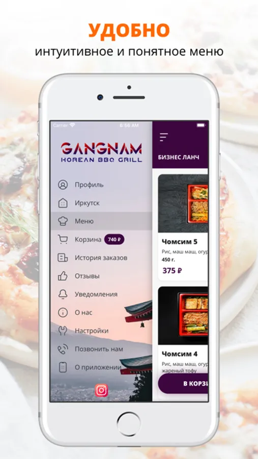 Приложение GANGNAM — это удобный способ заказа еды домой или в офис! Мы готовим наши блюда из качественных свежих ингредиентов и доставляем еду по Иркутску быстро и бережно.