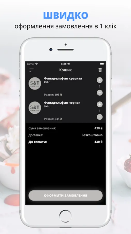 Приложение Лаунж-бара S&T Одесса — это удобный способ заказа еды домой или в офис! Мы готовим наши блюда из качественных свежих ингредиентов и доставляем еду по Одессе быстро и бережно.