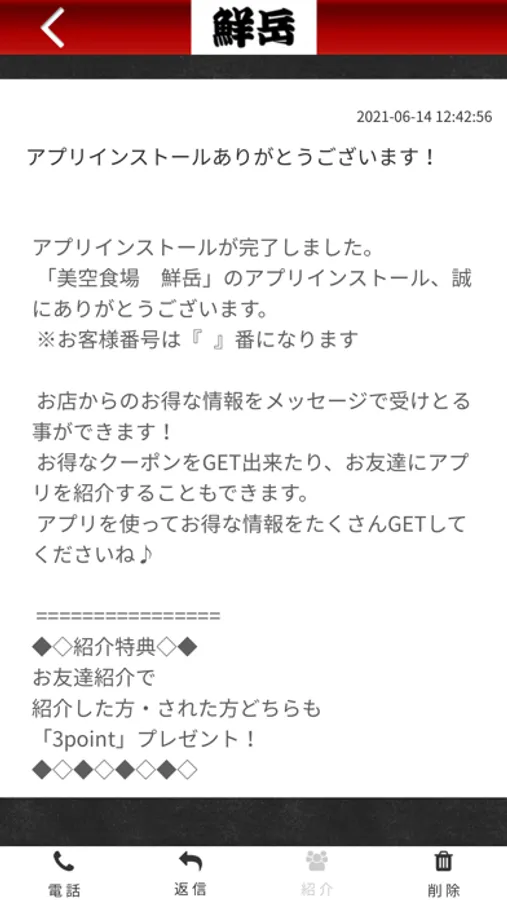 鮮岳のアプリをSNSを通じてお友達に紹介する事ができます。