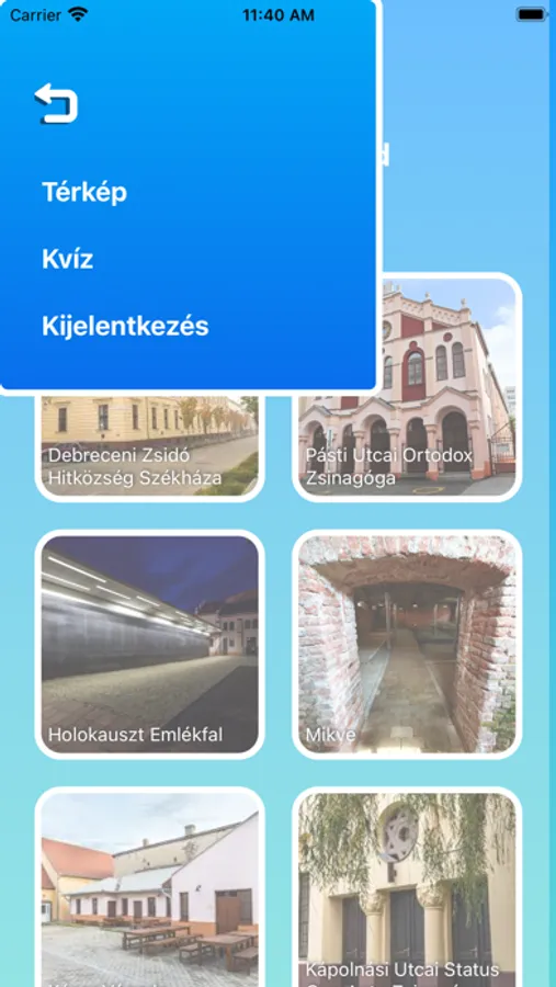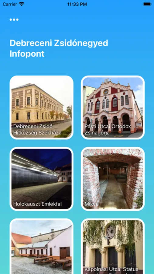 Történelmi helyszínek bemutatása, körbevezetés a Debreceni Zsidó Hitközségben. Kvíz játék és navigációs lehetőség.